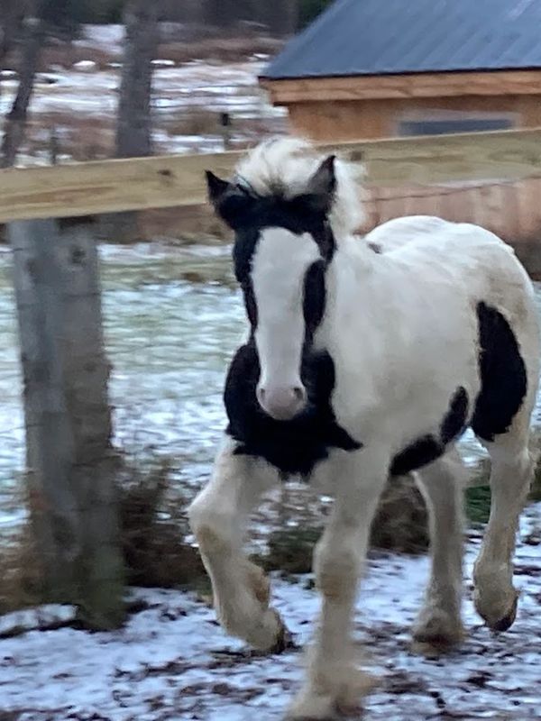 Micah is a gypsy vanner, a breed developed to pull Romany Vardos on the British Isles. He was born in June 2024, so he is just a yearling but is already doing extremely well growing into his role as equine assisted learning partner.